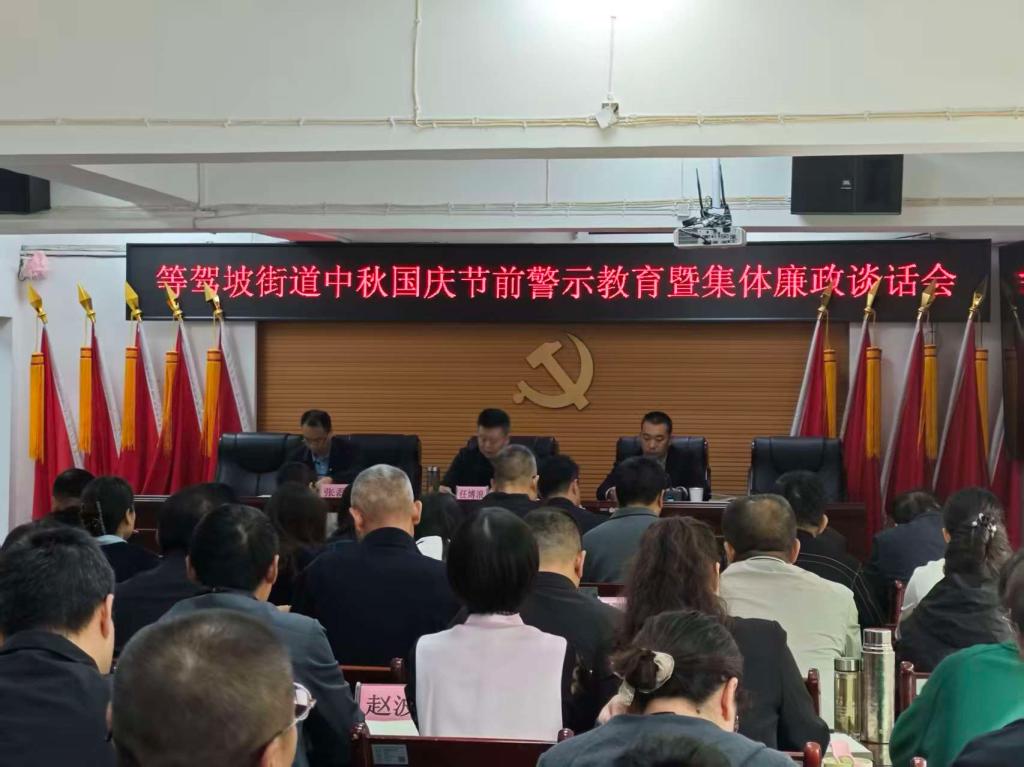 金秋送爽,丹桂飘香,中秋与国庆“双节”将至。为深入贯彻落实中央八项规定及其实施细则精神,坚决防止节日期间“四风”问题反弹回潮,切实增强街道全体党员干部廉洁自律意识,营造风清气正的节日氛围,9 月29日上午,等驾坡街道在街道一楼会议室,组织召开中秋国庆节前警示教育暨集体廉政谈话会,传达了中省市区各级纪委关于做好 2025年中秋、国庆期间党风廉政建设工作的重要指示精神。